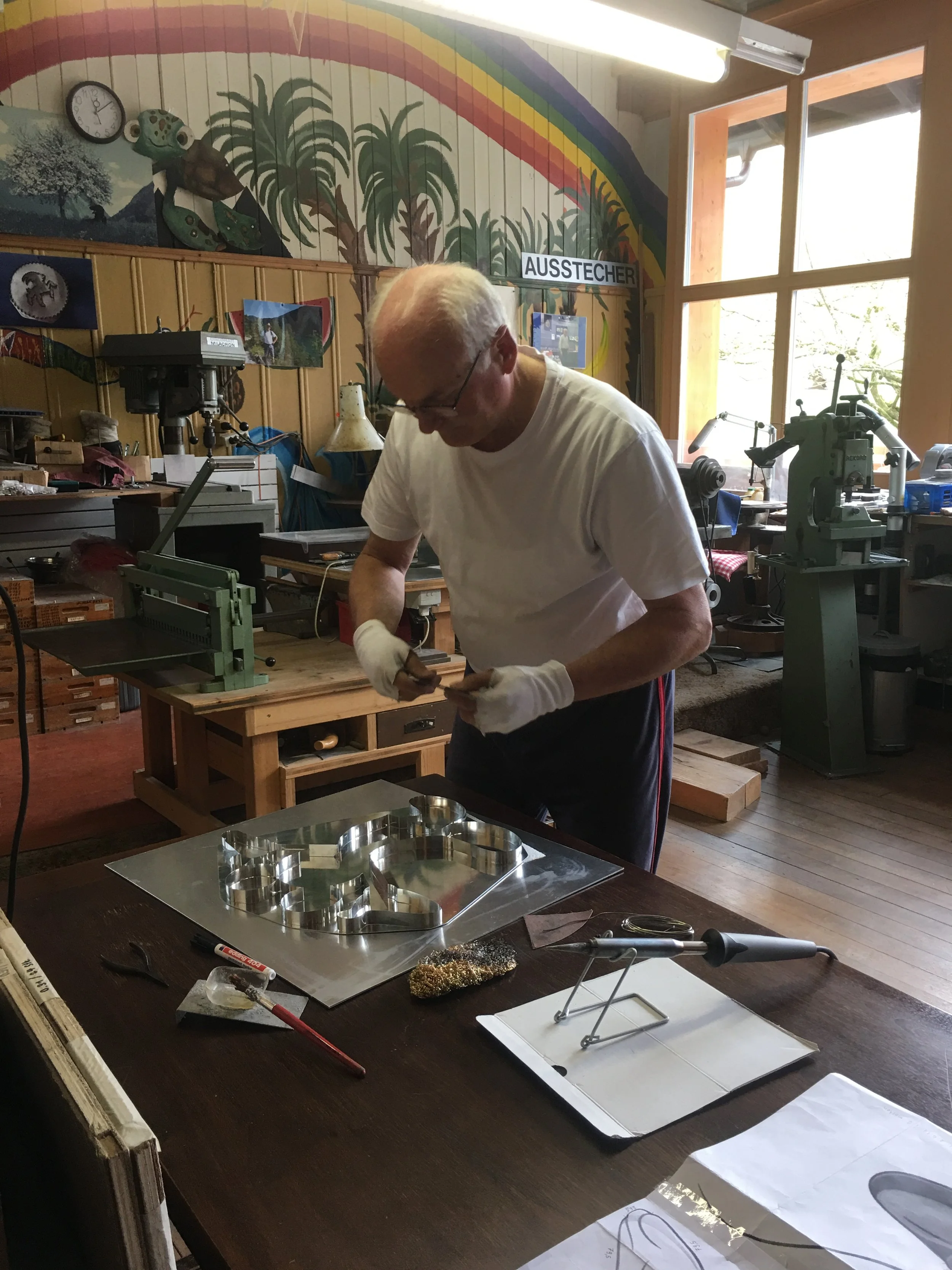 Da bei meinen Arbeitsabläufen die Handarbeit im Mittelpunkt steht, kann ich flexibel auf nahezu alle Kundenwünsche eingehen. Alles, was ich dafür benötige, ist eine Vorlage des gewünschten Ausstechers in Originalgrösse. Der Preis richtet sich nach dem individuellen Aufwand. Mein Stundenansatz, inklusive Material, beträgt Fr. 69.-- (zuzüglich MwSt.) und ist seit 2008 unverändert.