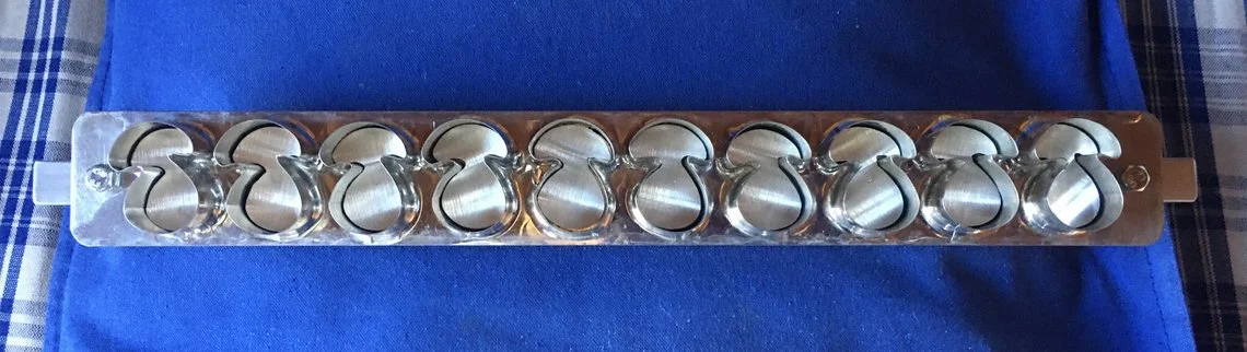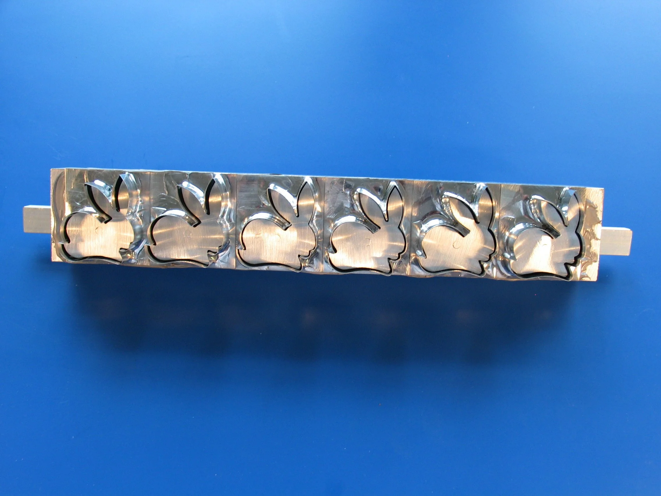 Um noch rationeller arbeiten zu können, ist es möglich, einzelne Ausstecher auf einen Aluminiumbalken aufzukleben. Maximale Länge ca. 35cm. So können Sie z.B. mit einem Arbeitsgang 6 Brezeli Nr. 0201 ausstechen.
